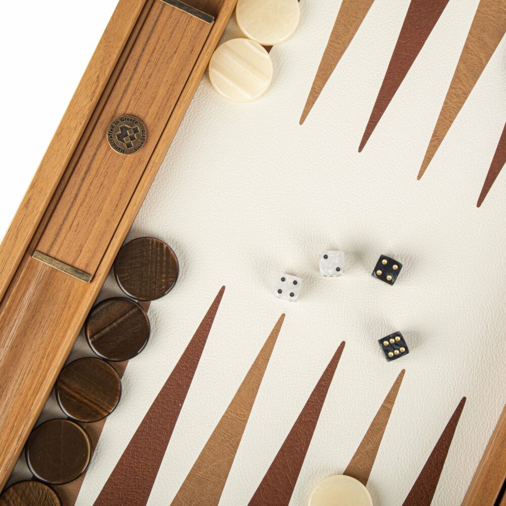 Backgammon Pliable Effet Crocodile en Cuir Ivoire et Marron et Bois