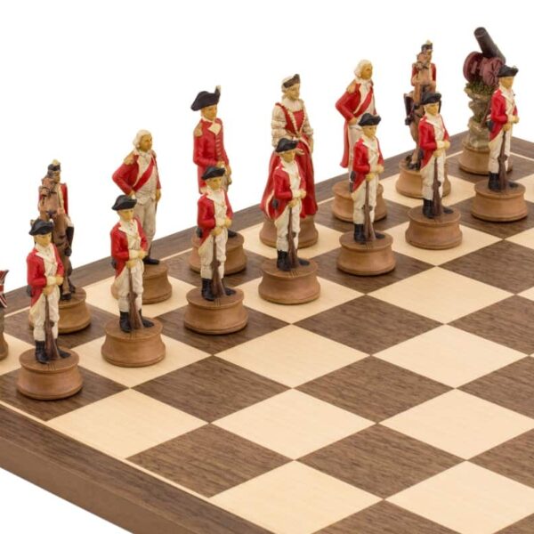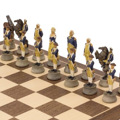 Ensemble Jeu d’Echecs Révolution Américaine et Echiquier en Bois de Noyer et Erable