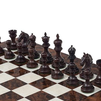 Pièces d’échecs réalisées en bois de rose et de buis sculptées et polies à la main, leurs sculptures et leur design sont à couper le souple.