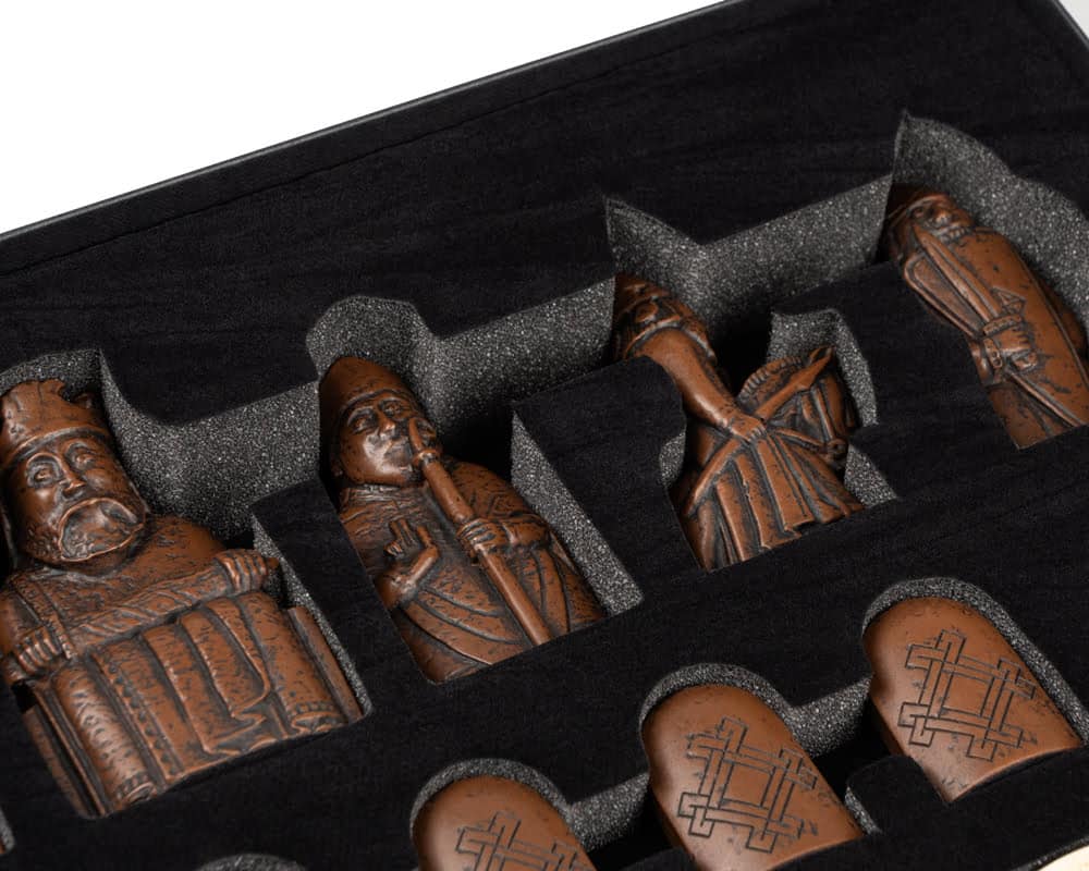 Les pièces d’échecs sont une reproduction très précise des figures originales de l’île de Lewis, trouvées sur l’île il y a plus de 200 ans. Ces superbes pièces d’échecs sont de fabrication britannique. Leur précision est étonnante car elles sont moulées à partir de scans laser 100% calquées sur les pièces originales. Cet ensemble de jeu d’échecs Ile de Lewis comprend les meilleures pièces d’échecs actuellement disponibles.