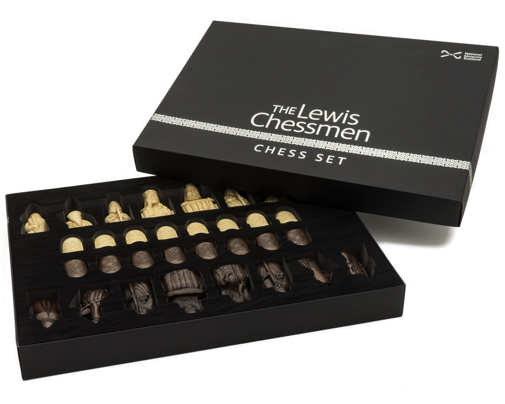 Ces pièces d’échecs sont reconnues dans le monde entier pour être une reproduction précise de celles retrouvées sur l’île de Lewis. Superbement reproduites en Grande-Bretagne avec grand soin, les pièces d’échecs originales sont présentées par le Musée national d’Ecosse. Les mesures ont été prises à partir de scanners laser. Les pièces d’échecs sont devenues une légende et restent l’une des conceptions les plus célèbres et les plus originales de pièces d’échecs au monde.