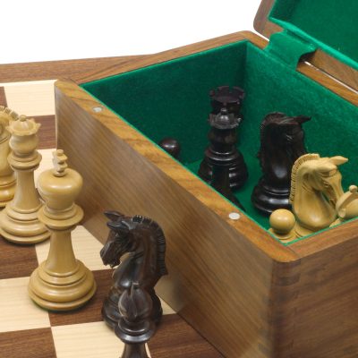 De grande taille, il est réalisé à la main dans de beaux matériaux et comprend un coffret de rangement pour stocker les pièces d’échecs.