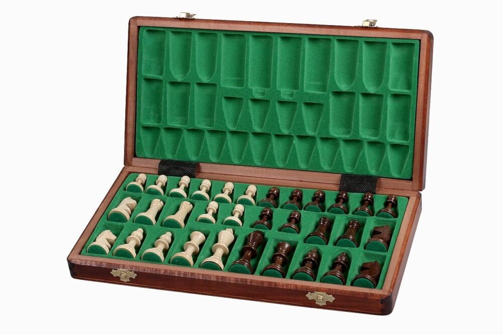 Jeu d’Échecs en Bois avec Échiquier Pliant en Sycomore et Acajou – Pièces en Bois de Charme